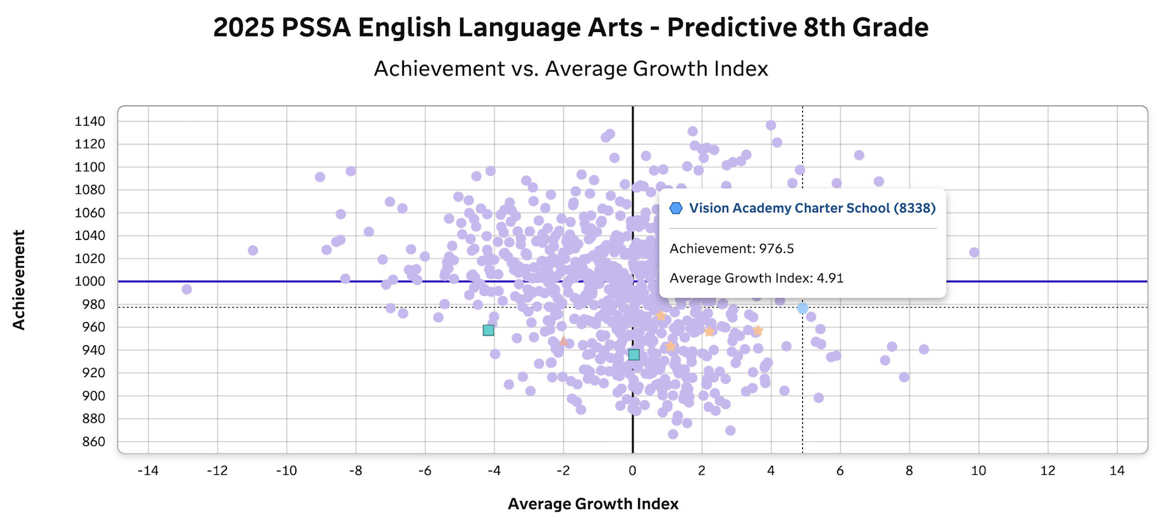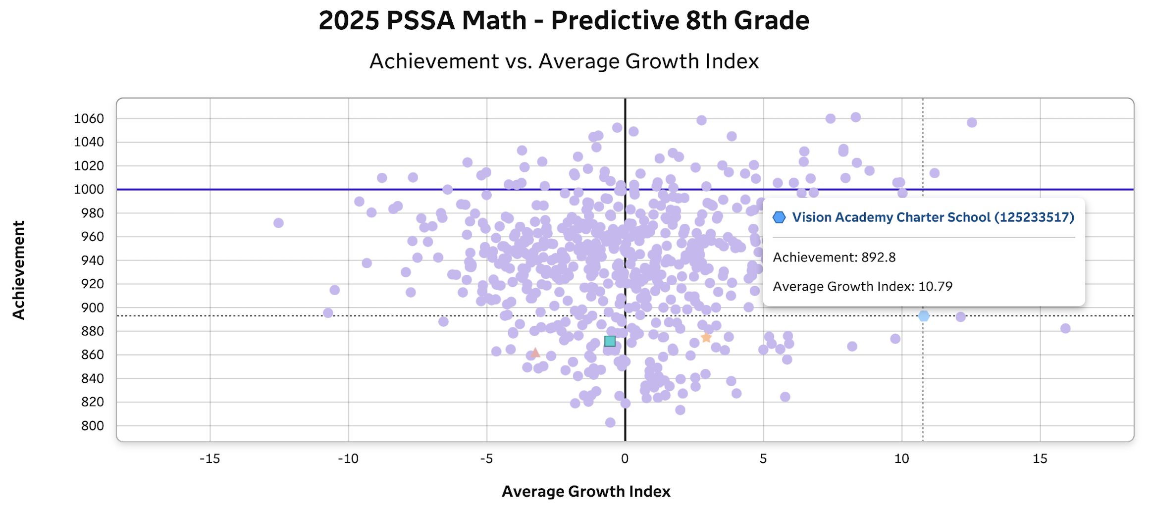 In addition, Vision Academy’s Building Level Score (Act 13) ranks among the highest of these feeder schools, reflecting our commitment to excellence across all areas of teaching and learning. Among all charter schools in Pennsylvania, Vision Academy Charter School has consistently ranked in the top quartile of brick-and-mortar charter schools for several consecutive years.